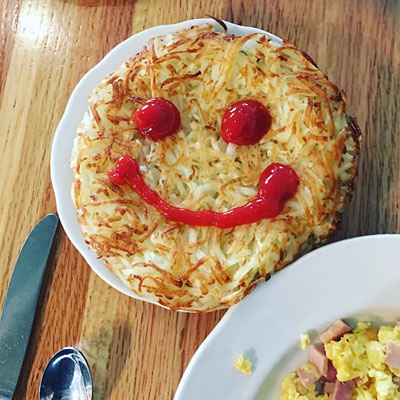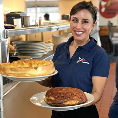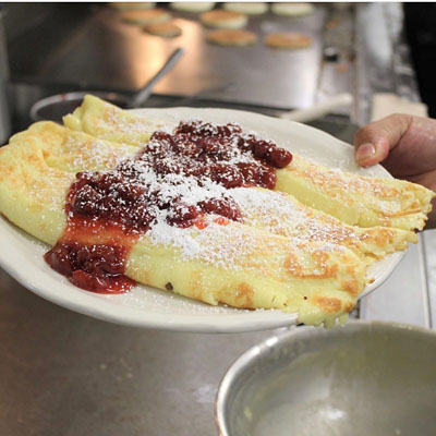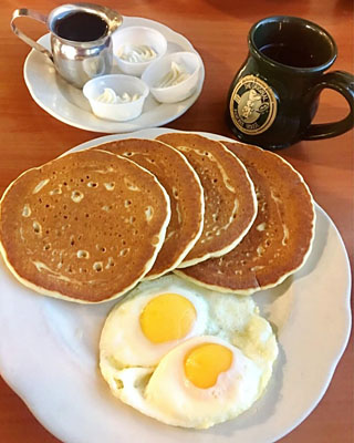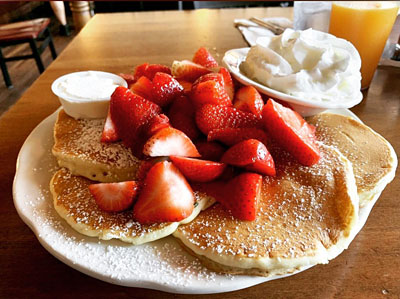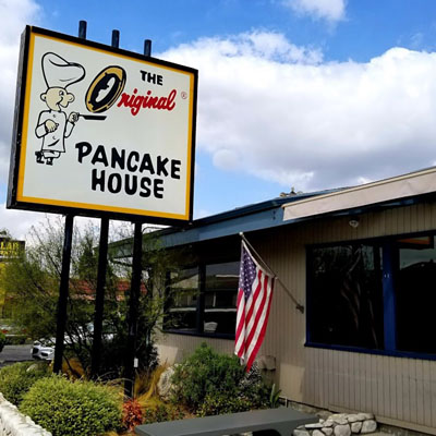 Our collectible signature mug Serving up our German and Apple pancakes Cherry kijafa crepes Danish favorite! Three powdered sugar-dusted crepes filled and topped with cherries simmered in kijafa. The Dutch Baby Miniature German pancake served with lemon wedges and powdered sugar. Potato Pancakes Served with apple sauce or sour cream. Sunny-side up eggs and pancakes The famous Apple Pancake Oven-baked with fresh apples and cinnamon sugar glaze. Our yummy French Toast Cherry Kijafa Crepes Danish favorite! Three powdered sugardusted crepes filled and topped with cherries simmered in kijafa. Our hash browns will make you smile Belgian waffle With fresh strawberries and whipped cream (seaonal). Servers celebrate Star Wars Day Crispy bacon and scrambled eggs breakfast One of our generous four-egg omelets Served with three buttermilk pancakes with whipped butter. Choice of Cheddar, Swiss, or Jack cheese included. It's never too early for breakfast 49’ER FLAPJACKS From the Mother Lode Country. Chewy and tender. Served with whipped butter Gift cards and collector’s items available Everything’s better with bacon We’ll meet you at sunrise Building exterior We heart out logo The freshest bacon and eggs Buttermilk pancakes With fresh strawberries and whipped cream (seasonal).